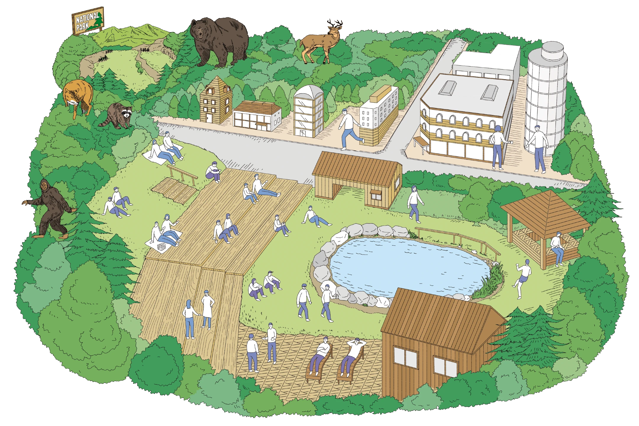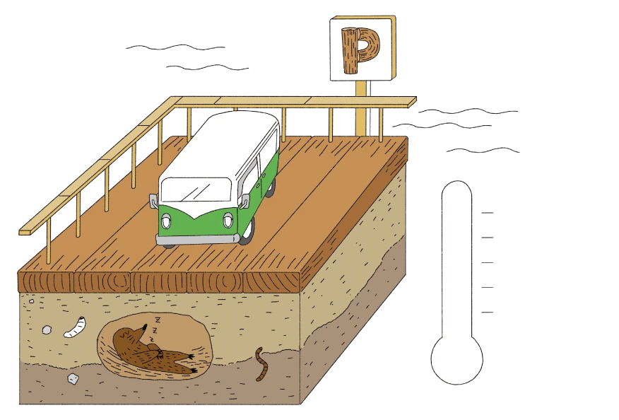 最大50℃以上になるコンクリートや鉄と違い、木は熱を蓄えません。
