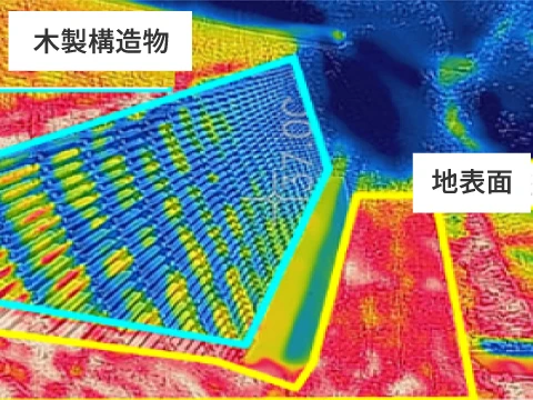 サーモカメラでの確認で、木製構造物は生き物にとって日射と熱からの避難場所として貢献しています。